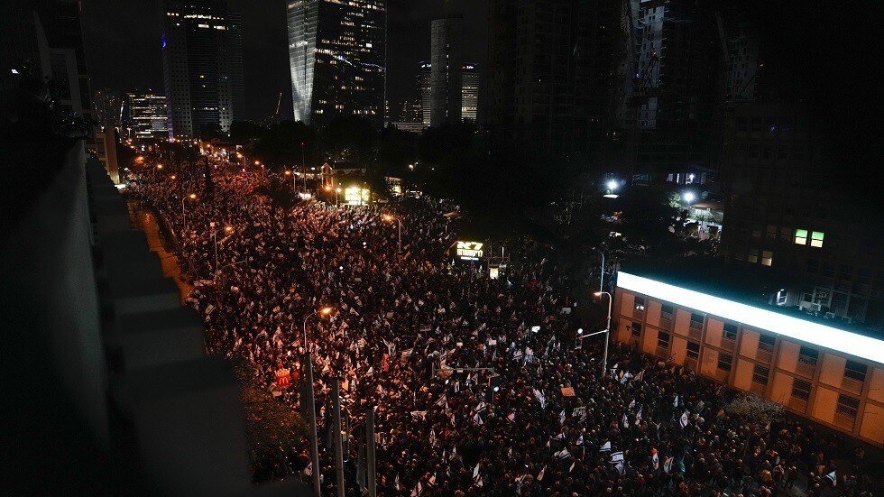 | ͡ ͡ NOURI ͡TAREK͡ قام بنشر موضوع جديد في القسم الذي أنت تتابعه في منتديات تونيزيـا سات. عشرات الآلاف من الإسرائيليين يشاركون في احتجاجات ضد الحكومة تظاهر عشرات آلاف الإسرائيليين في شوارع مدن إسرائيلية عدة احتجاجا على خطط حكومة بنيامين نتنياهو لإصلاح النظام القضائي. ويقول منتقدون إن الإجراءات التي اتخذتها الحكومة المتشددة الجديدة ستضعف المحكمة العليا وتحد من الرقابة القضائية، وتعطي مزيدا من الصلاحيات للسياسيين. ويقول المتظاهرون إن ذلك من شأنه تقويض الديمقراطية. الخلاف حول سلطة المحاكم آخذ في التعمق حيث تستعد الحكومة لتقديم بعض التشريعات في البرلمان يوم الإثنين وسط دعوات إلى إضرابات جزئية من قبل الشركات والمنظمات المهنية. واصل المتظاهرون تنظيم المسيرات الكبيرة للأسبوع السادس. وكان التجمع الرئيسي في وسط مدينة تل أبيب وكان هناك العديد من التجمعات الصغيرة في مدن أخرى. المصدر: "أ ب" الرجاء عدم الرد على هذه الرسالة. يجب عليك زيارة المنتدى للرد. تم إرسال هذه الرسالة لك لأنك اخترت متابعة القسم "منتدى الأخبار" في منتديات تونيزيـا سات مع إشعار بالبريد الإلكتروني عند وجود مواضيع أو مشاركات جديدة. لن تتلقى أي رسائل أخرى حول هذا الموضوع حتى تقوم بقراءة الرسائل الجديدة. إذا كنت لا ترغب في تلقي المزيد من هذه الرسائل، يمكنك تعطيل الرسائل من هذا القسم أو تعطيل كافة الرسائل. |