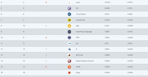 Les 20 langages informatiques les plus populaires en février