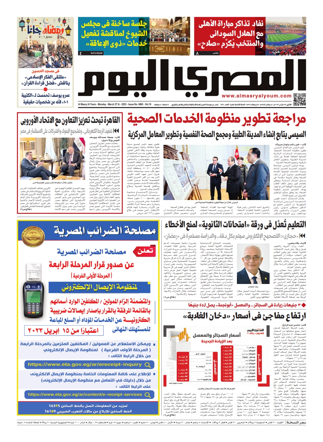 نبدأ معكم عددنا ليوم الأثنين 27 مارس 2023.. وفيه نتابع: