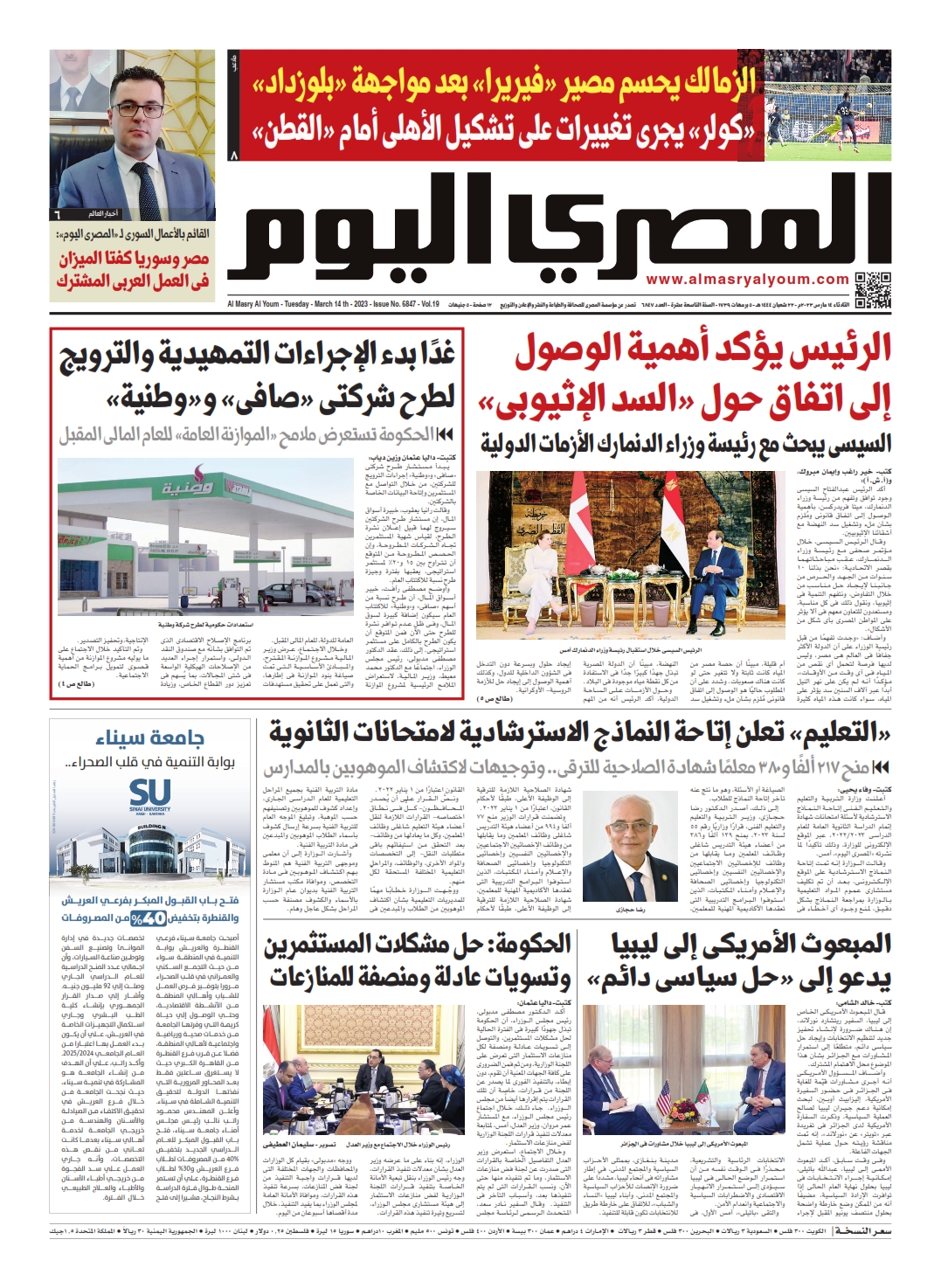 نبدأ معكم عددنا ليوم الثلاثاء 14 مارس 2023.. وفيه نتابع: