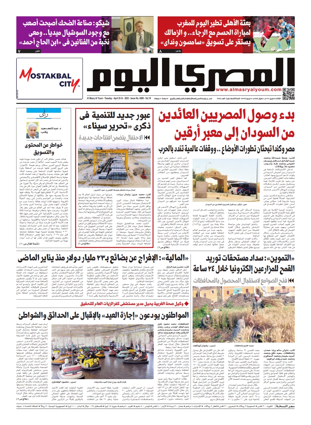 نبدأ معكم عددنا ليوم الثلاثاء 25 أبريل 2023.. وفيه نتابع: