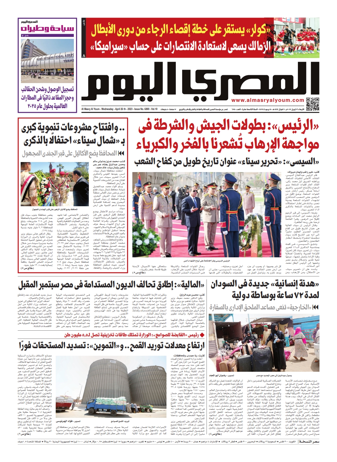 نبدأ معكم عددنا ليوم الأربعاء 26 أبريل 2023.. وفيه نتابع:
