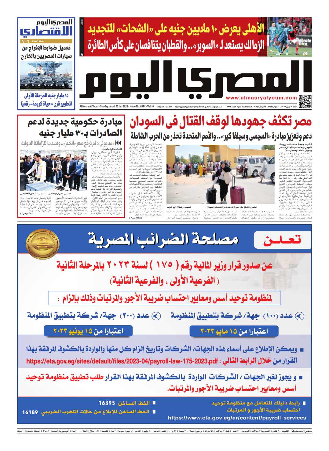 نبدأ معكم عددنا ليوم الأحد 30 أبريل 2023.. وفيه نتابع: