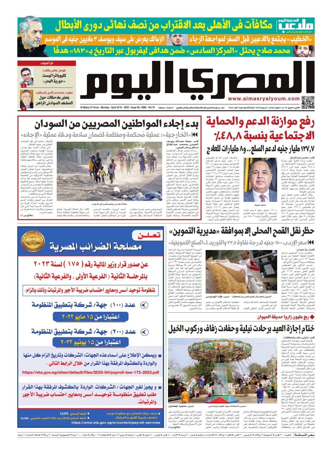 نبدأ معكم عددنا ليوم الأثنين 24 أبريل 2023.. وفيه نتابع: