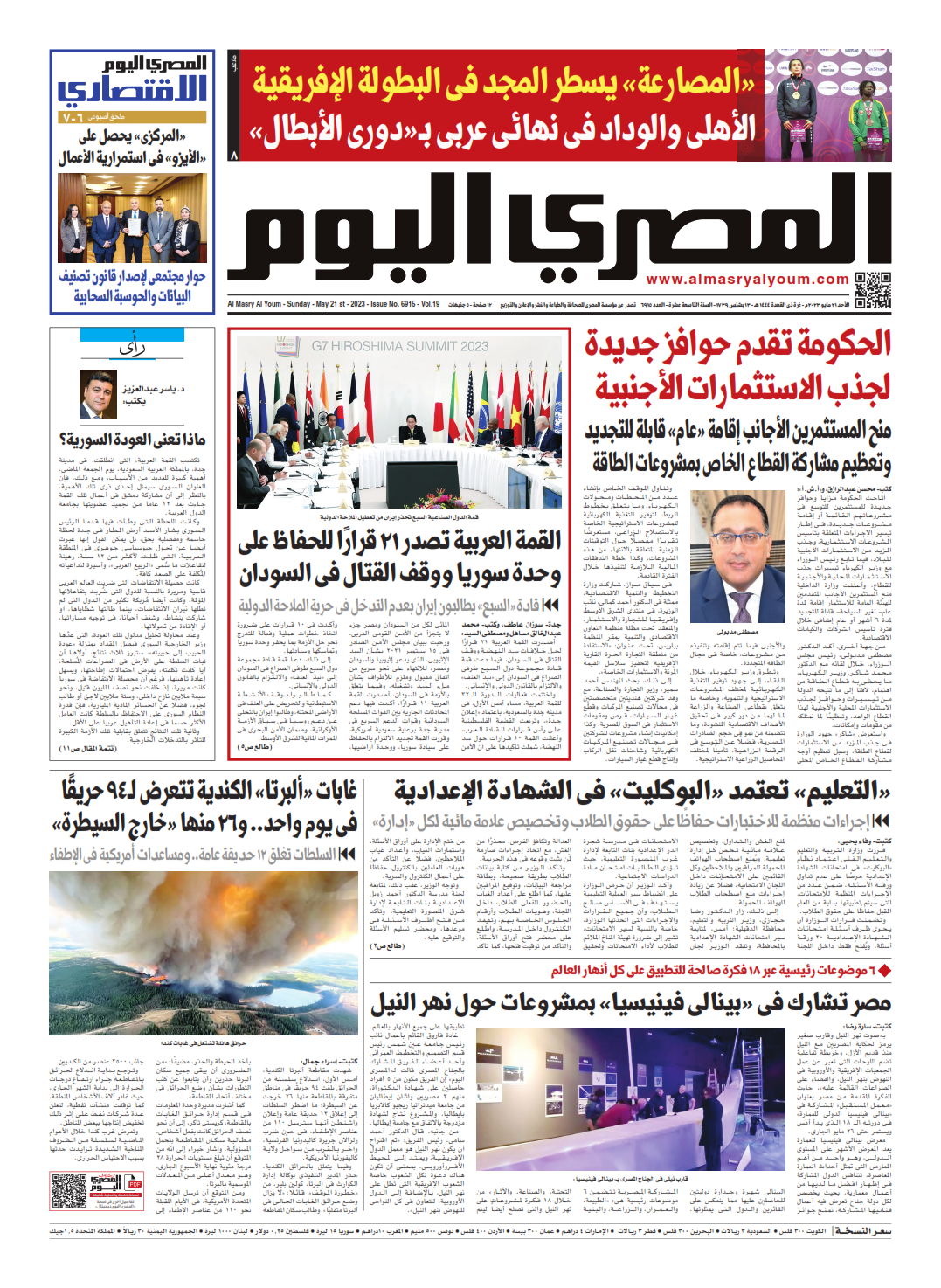 نبدأ معكم عددنا ليوم الأحد 21 مايو 2023.. وفيه نتابع: