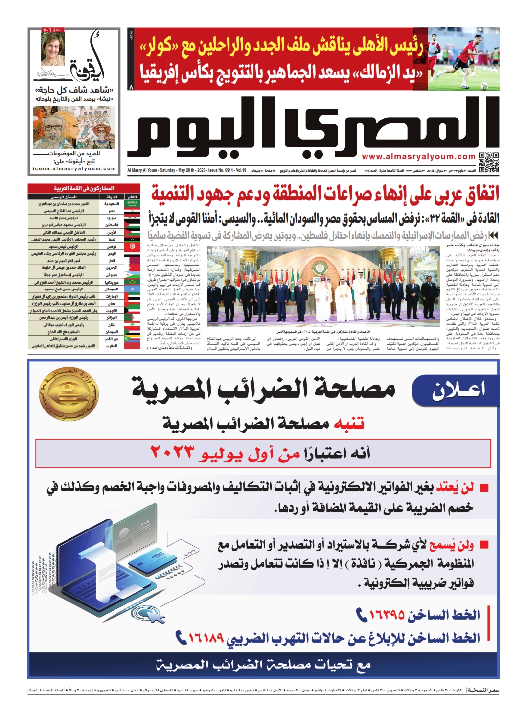نبدأ معكم عددنا ليوم السبت 20 مايو 2023.. وفيه نتابع: