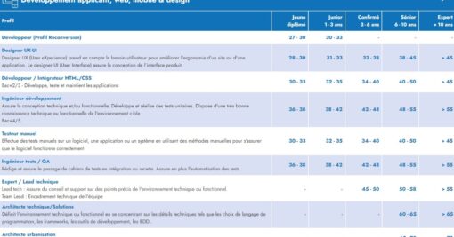 Retrouvez la grille de salaire des différents secteurs de l'informatique en 2023, proposée par le cabinet Externatic.