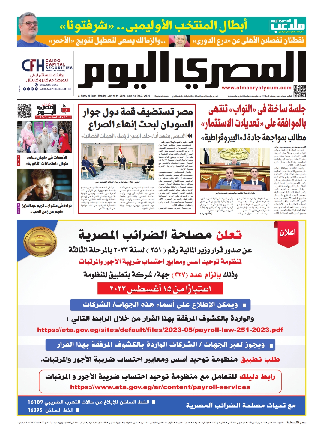 نبدأ معكم عددنا ليوم الأثنين 10 يوليو 2023.. وفيه نتابع: