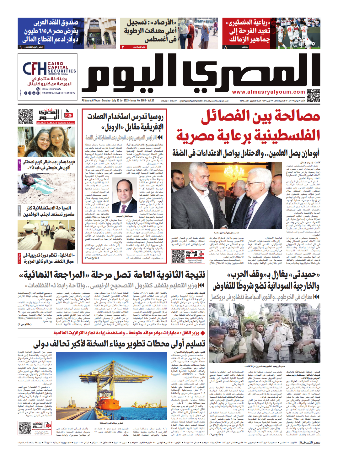 نبدأ معكم عددنا ليوم الأحد 30 يوليو 2023.. وفيه نتابع: