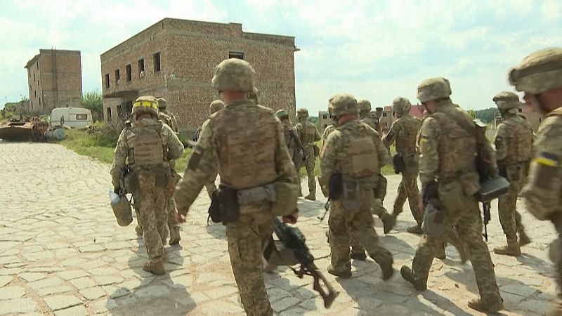 En Pologne, les soldats ukrainiens s'initient aux techniques de combat en milieu urbain, armes occidentales à la main. Plusieurs instructeurs français s'occupent de cette formation.