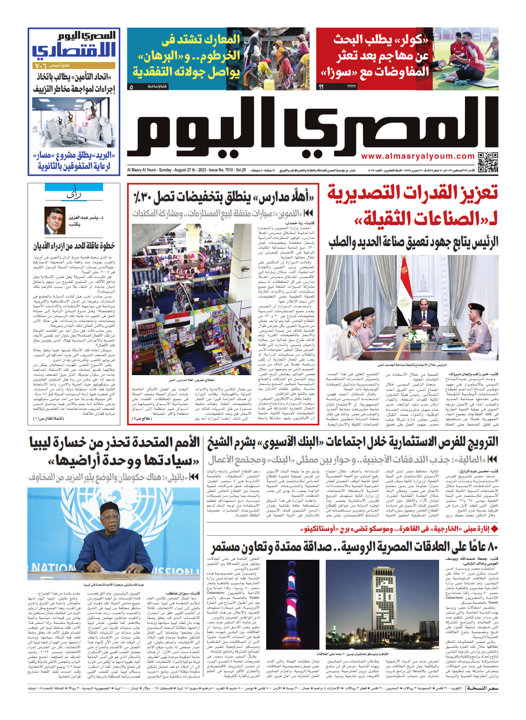 نبدأ معكم عددنا ليوم الأحد 27 أغسطس 2023.. وفيه نتابع: