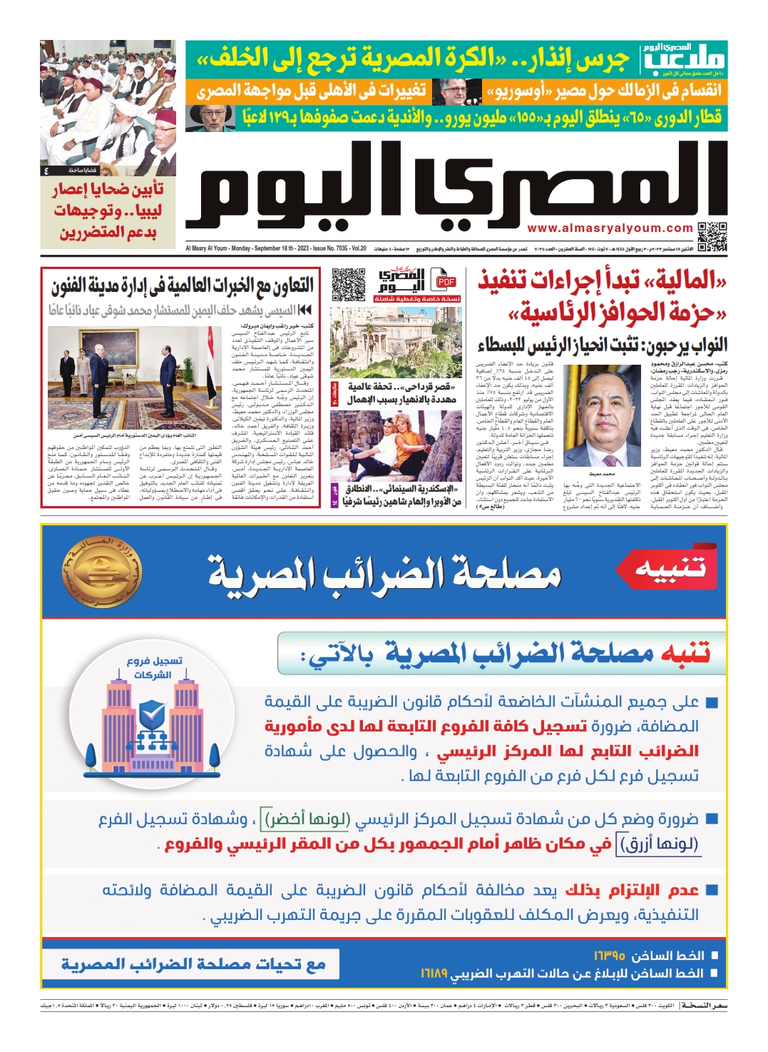 نبدأ معكم عددنا ليوم الأثنين 18 سبتمبر 2023.. وفيه نتابع: