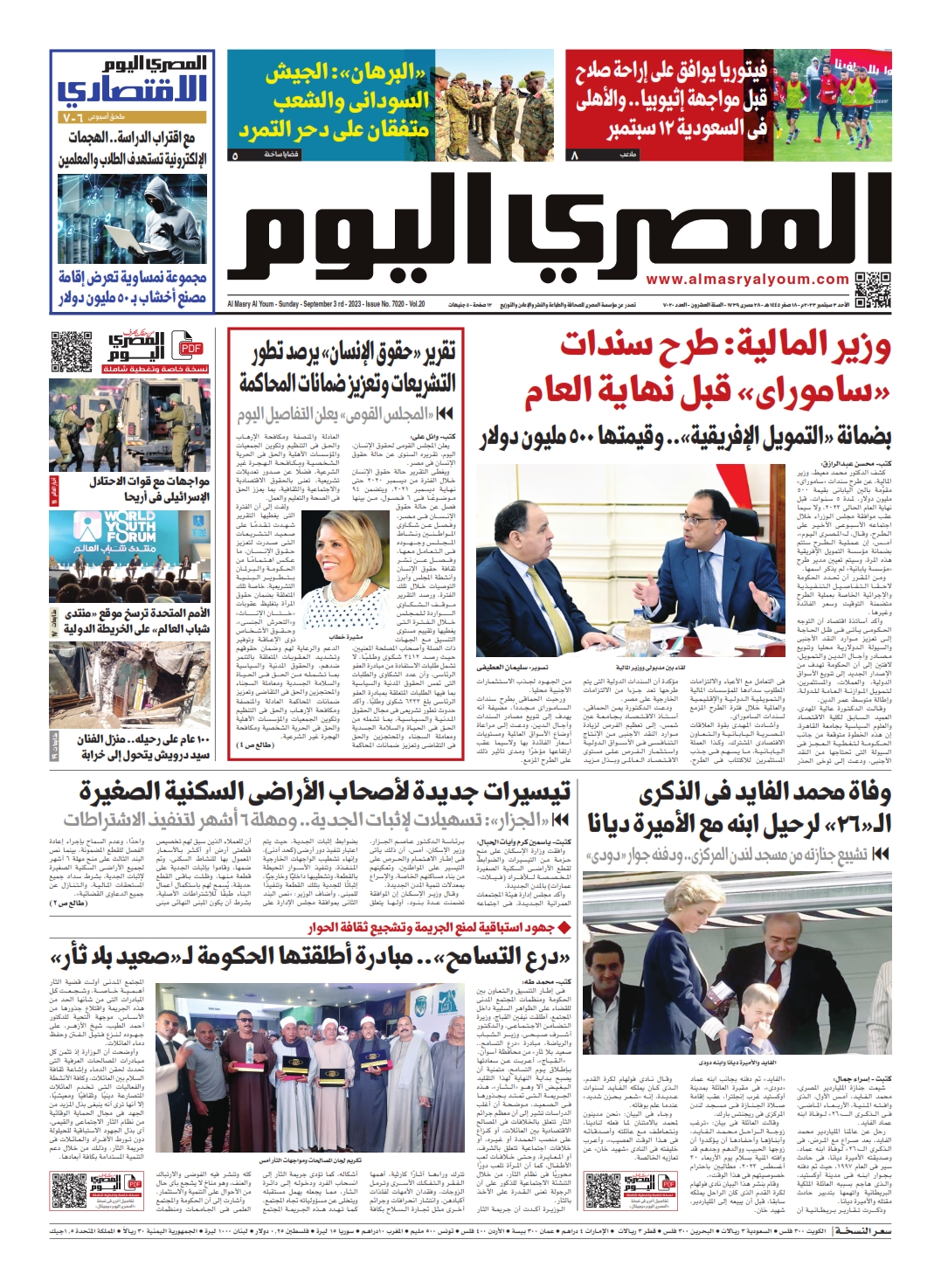 نبدأ معكم عددنا ليوم الأحد 3 سبتمبر 2023.. وفيه نتابع: