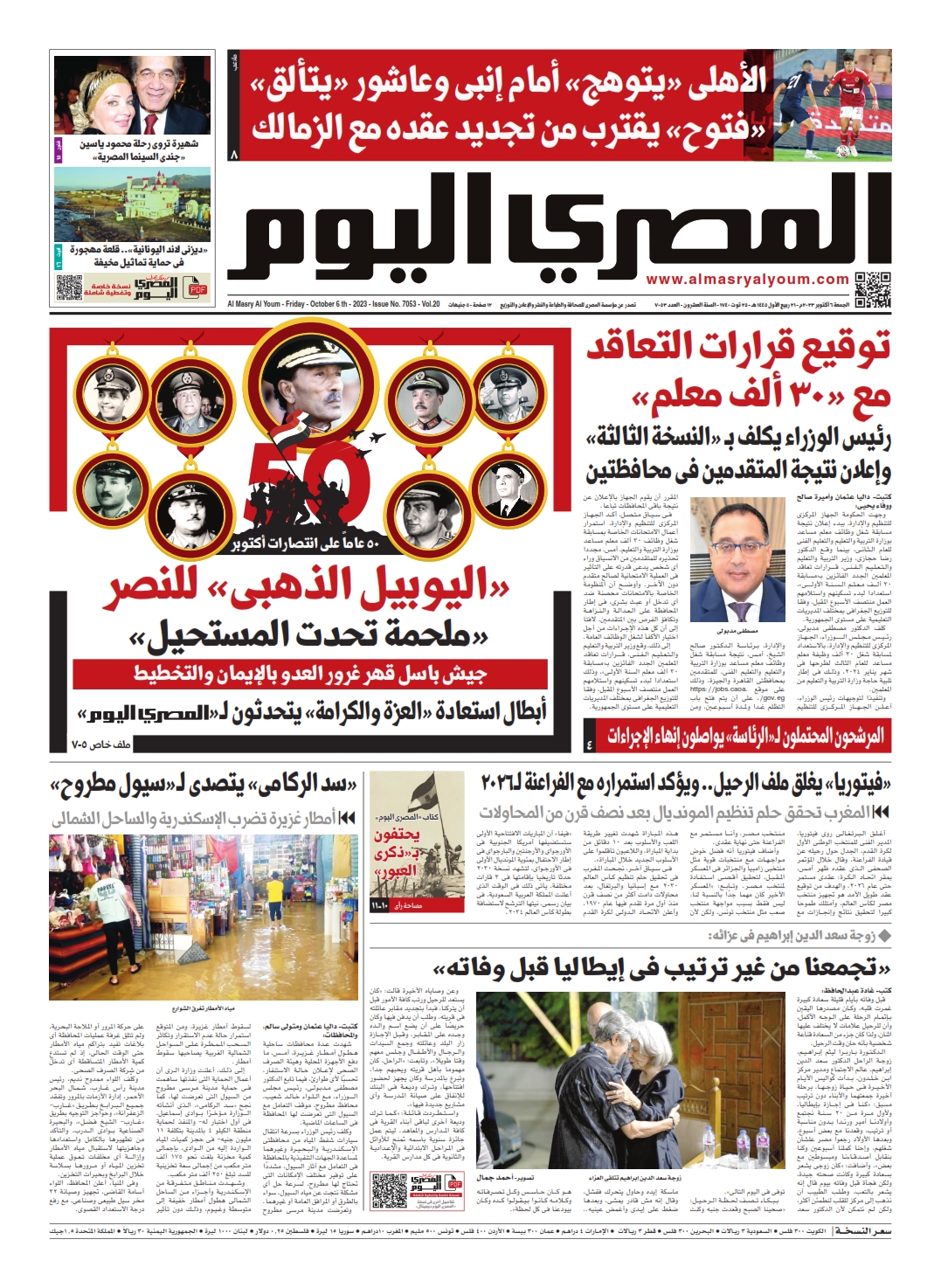 نبدأ معكم عددنا ليوم الجمعة 6 أكتوبر 2023.. وفيه نتابع: