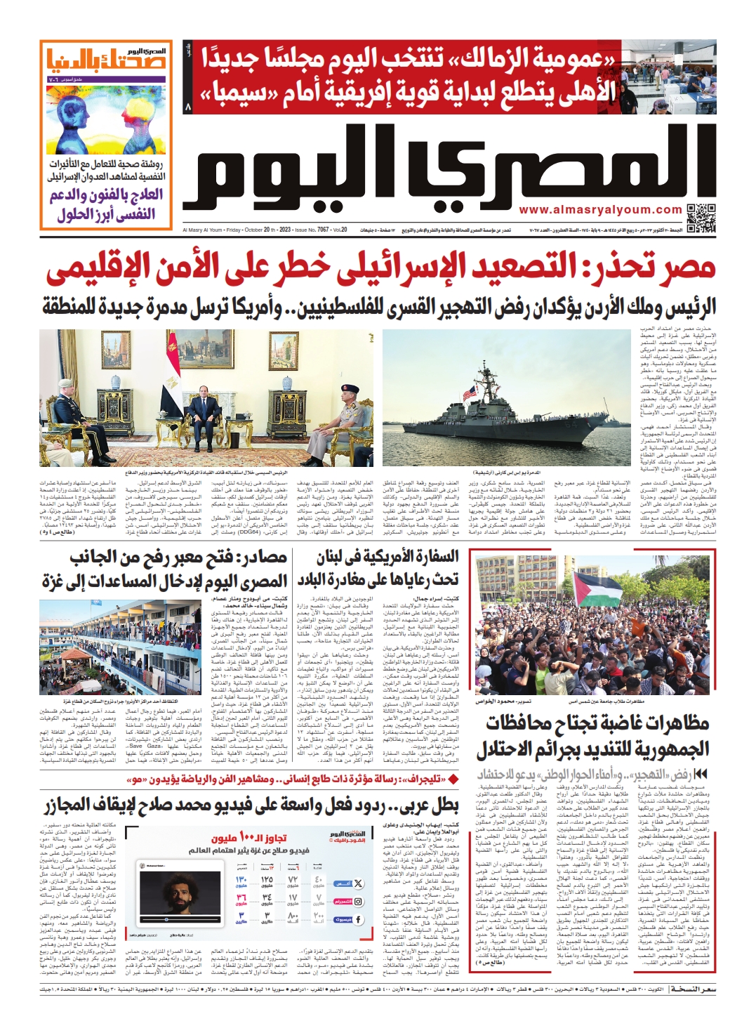 نبدأ معكم عددنا ليوم الجمعة 20 أكتوبر 2023.. وفيه نتابع: