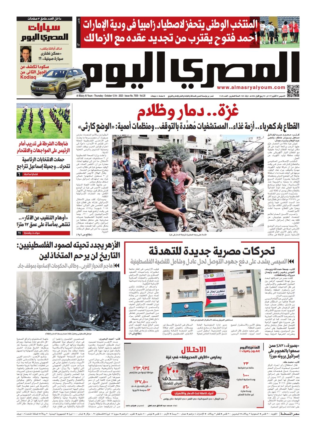 نبدأ معكم عددنا ليوم الخميس 12 أكتوبر 2023.. وفيه نتابع: