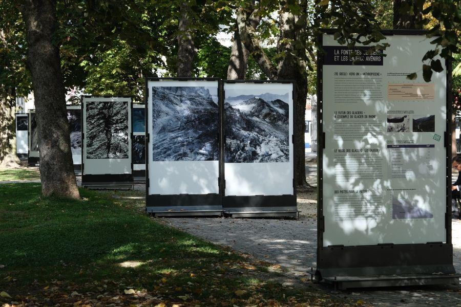 Sous les marronniers du parc des Bastions, le cri des glaciers | – Eléonore Sulser | A Genève, cinq photographes donnent à voir la haute montagne aux prises avec le changement climatique. Une exposition poignante Sous les marronniers du parc des Bastions, en pleine ville de Genève, on perçoit comme un écho du craquement profond des glaciers, on devine le cri silencieux des montagnes malmenées par le réchauffement climatique. Cette exposition, en plein air, organisée en marge de la 7e édition du Festival international du film sur les glaciers du 1er au 3 décembre prochain, à la Maison des arts du Grütli, s'intitule Témoins de glace. Les «témoins», ce sont à la fois les cinq photographes dont sont présentées les œuvres – Thomas Crauwels, Nicolas Crispini, Bernard Garo, Eddy Mottaz et Jacques Pugin – et les montagnes elles-mêmes, sujets de leurs travaux. Témoin encore, Jean Jouzel, climatologue et glaciologue, qui présente l'exposition en rappelant que «dans l'hypothèse d'une élévation des températures moyennes de 3 °C, la surface englacée dans les Alpes diminuerait de 80%. Et si la hausse atteint 5 °C, seuls les plus grands glaciers, comme celui d'Aletsch ou ceux situés à des altitudes supérieures à 3500 mètres, subsisteront.» Majestueux et mélancolique Les photographies dessinent un parcours majestueux et mélancolique, inquiétant aussi. Thomas Crauwels saisit les montagnes comme des personnages, portraits de géants blancs aux larges épaules, qui remplissent l'image, touchant un ciel minuscule. Cette puissance des monts apparaît blessée chez Bernard Garo, qui montre l'écorce griffée du glacier de Fee «comme une peau de chagrin» ou comme le résultat d'une violente «scarification»; à quoi s'ajoute un champ de bataille désespéré, le glacier du Rhône recouvert de bâches. Nicolas Crispini se coule dans les plis géologiques, donnant à voir des formes premières qu'il a pourtant débusquées sur Google Earth. Ce détournement de la technologie, travaillé en noir et blanc, révèle les tracés de forces telluriques, patientes, complexes et brutes. Le photographe du Temps Eddy Mottaz explore les états, les textures et les couleurs des monts et de la glace – c'est blanc, c'est bleu, c'est noir – en quête d'une «vibration» particulière, poétique, ultrasensible. Il pointe la richesse, la diversité inouïe qui risquent de disparaître. Par ses images superposées, comme en mouvement, tout en masse et en transparence en même temps, Jacques Pugin met en scène des paysages fantômes, qui peut-être, bientôt, seront effacés ou, en tous les cas, irrémédiablement transformés. Témoins de glace. Nos glaciers alpins, sentinelles du climat, à voir jusqu'au 9 novembre au parc des Bastions. |
