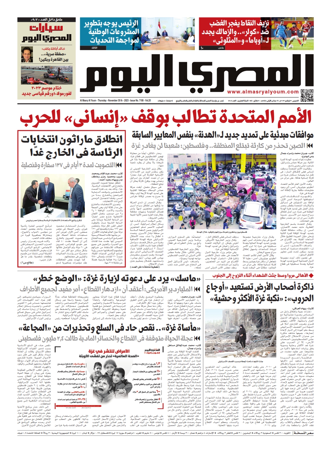 نبدأ معكم عددنا ليوم الخميس 30 نوفمبر 2023.. وفيه نتابع: