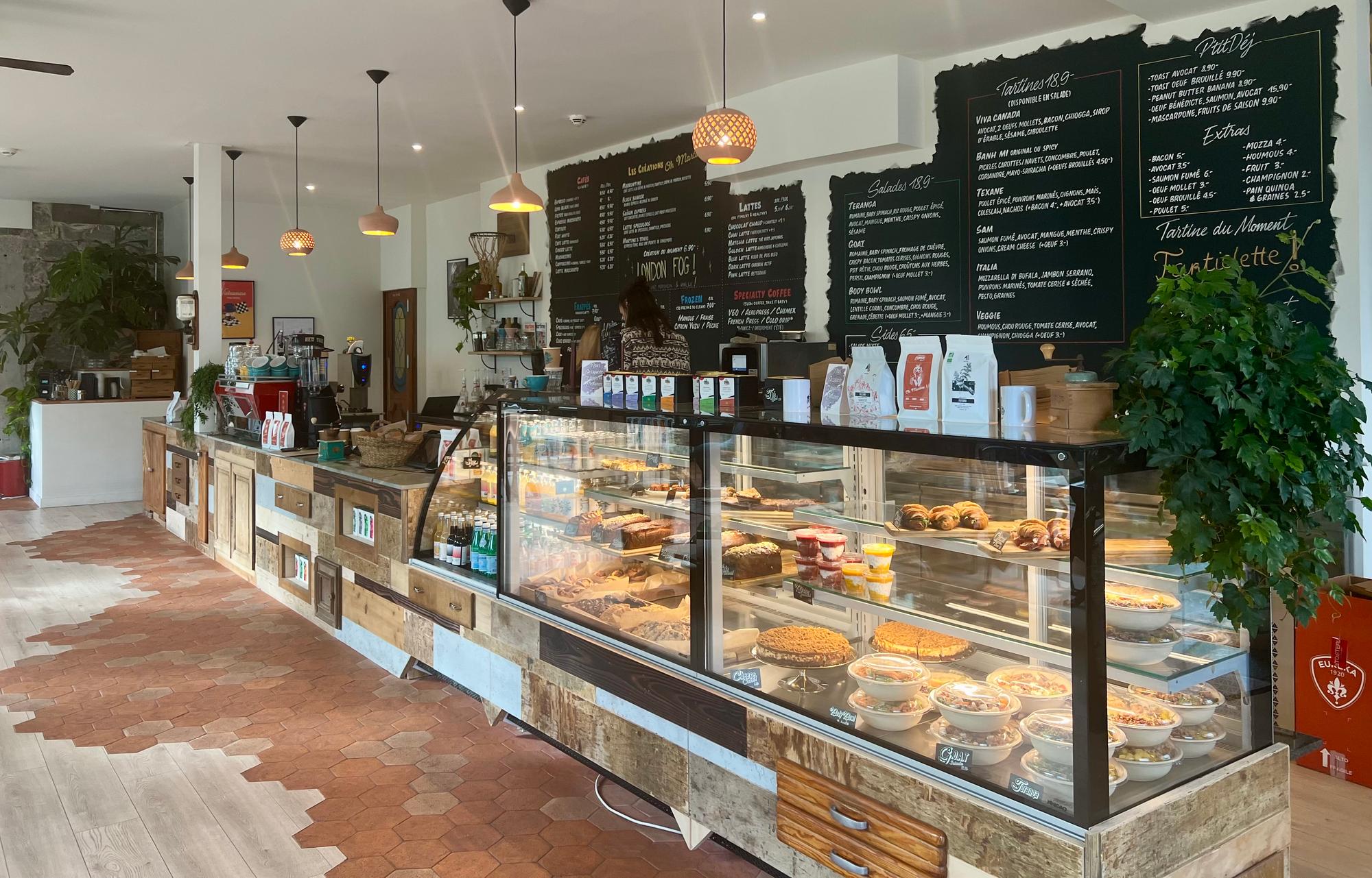 Oh Martine!, exclamation de café | – Francesca Serra | Après les Eaux-Vives, le café Oh Martine! conquiert un deuxième lieu à Genève, à la gare Cornavin, avec ses spécialités caféinées et ses tartines gourmandes A la sortie arrière de la gare Cornavin, au pied de l'hôtel Montbrillant, Oh Martine! vient d'inaugurer son deuxième café, plus spacieux et profitant d'une belle luminosité grâce à sa véranda vitrée. La décoration chaleureuse réussit à créer un ensemble harmonieux composé de fauteuils en velours, chaises en bois et canapés de style asiatique. Pour compléter le tout, une touche de végétation et des objets drôles qui évoquent l'insouciance des années 1980, des vinyles vintage à l'illustration en noir et blanc d'un Arnold Schwarzenegger jeune et séduisant. Ici, nous sommes chez des spécialistes du café, moulu à partir de grains bios – le lait lui aussi est bio. Le tableau noir décline les propositions usuelles, mais aussi des spécialités de la maison comme le Marrontine, un café latte à la crème de marrons, à la chantilly et à la noisette, ou encore le Saigon Express, un double expresso avec du lait concentré au fond et du lait froid mousseux en haut. Autre proposition surprenante, le Martine's Tonic agrémente l'expresso avec une pointe de gingembre. La voie lactée Dans la panoplie des lattes, laits aromatisés, figurent bien évidemment le chaï, parfumé aux épices, mais aussi le Golden Latte, boisson devenue très populaire à laquelle on attribue des vertus détox grâce à son trio de curcuma, gingembre et cannelle. Oh Martine! propose aussi un lait rose avec de la betterave, ou noir avec du charbon actif. En plus des salades et des toasts traditionnels – avocat ou œuf Bénédicte –, la maison élabore une carte de tartines salées très gourmandes. Jeu de sucré-salé pour Vive Canada avec avocat, deux œufs mollets, bacon, sirop d'érable, sésame, ciboulette et chioggia, variété de betterave rose veinée de blanc. Inspiration asiatique pour le Bahn Mi avec ses spaghettis de pickels de carottes et navet, concombre, poulet, coriandre et mayo Sriracha. On peut également repartir avec des cafés à déguster à la maison. Ceux torréfiés par la marque Adrenaline présentent différentes techniques de fermentation. Du Costa Rica, Cordillera de fuego dévoile des notes de chocolat noir et de fruits rouges avec une acidité rappelant la groseille et le citron vert, et le colombien Finca Monteblanco laisse éclore des arômes de mangue et fruit de la passion. Oh Martine!, 2, rue de Montbrillant, Genève. |