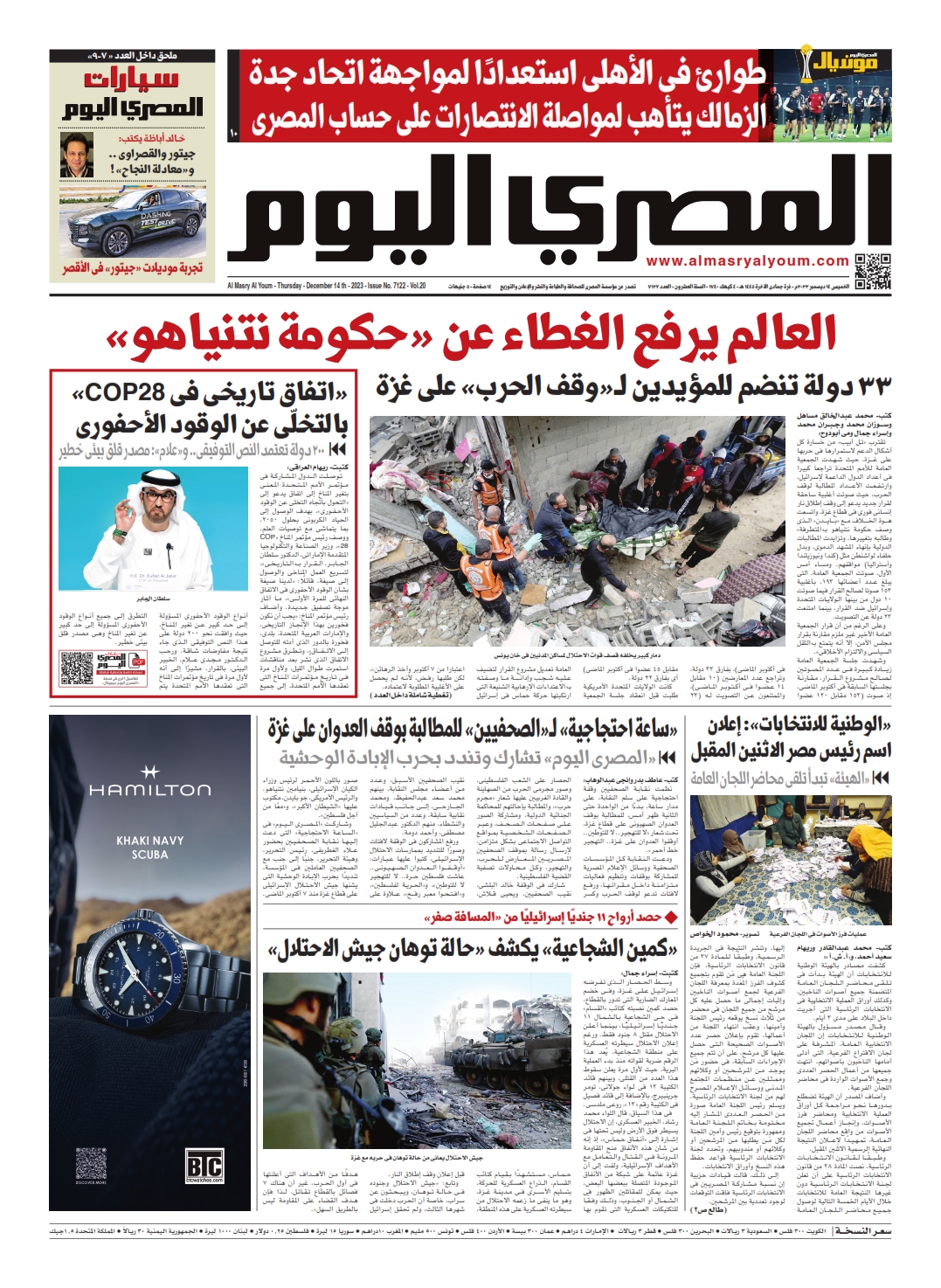 نبدأ معكم عددنا ليوم الخميس 14 ديسمبر 2023.. وفيه نتابع: