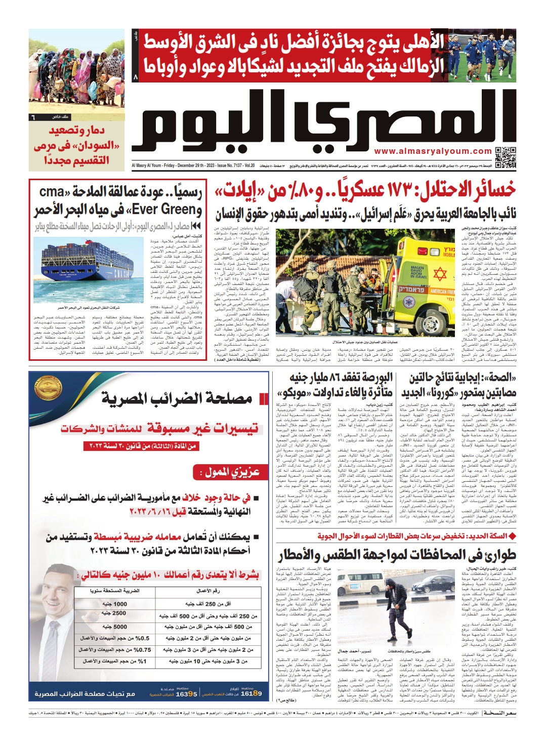 نبدأ معكم عددنا ليوم الجمعة 29 ديسمبر 2023.. وفيه نتابع: