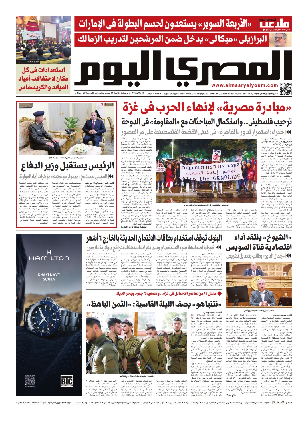 نبدأ معكم عددنا ليوم الأثنين 25 ديسمبر 2023.. وفيه نتابع:
