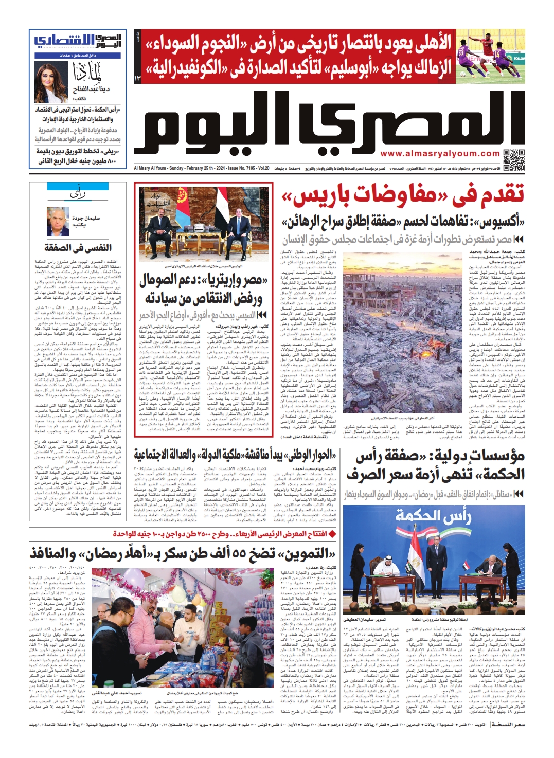 نبدأ معكم عددنا ليوم الأحد 25 فبراير 2024.. وفيه نتابع: