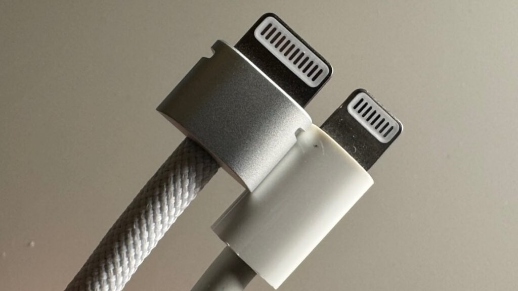 Contraint d'abandonner le Lightning au profit de l'USB-C sur iPhone, Apple a développé un nouveau câble propriétaire, que l'on pourrait qualifier de « Mega Lightning ». Il permet de connecter la batterie du Vision Pro au casque. C'est anecdotique, mais amusant.