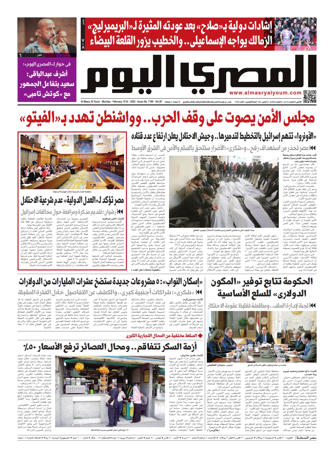 نبدأ معكم عددنا ليوم الأثنين 19 فبراير 2024.. وفيه نتابع: